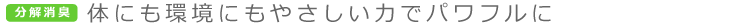 植物たちによる自然界の浄化力が、様々な悪臭(たばこ・汗のにおい・生ごみの腐敗臭・下水のにおい・混合臭・臭気・郷土の強いトリメチルアミン等の一切)の元を即座に強力に分解消臭します。
