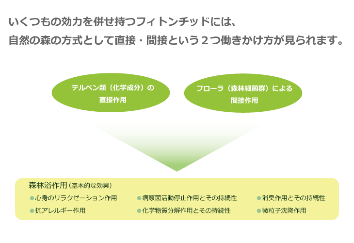 フィトンチッドこそ、私たちの健康や環境をまもってくれる、とても貴重な自然界の恵みなのです。